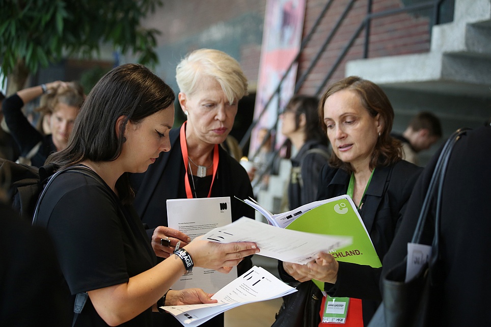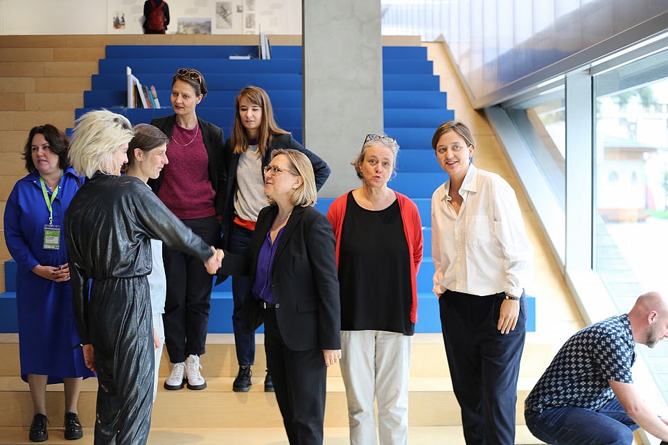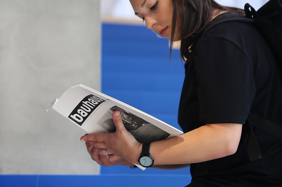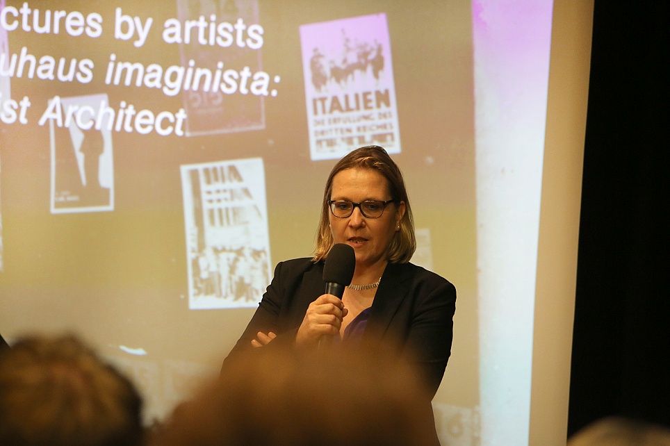 Opening, bauhaus imaginista: Moving Away: The Internationalist Architect, artists Doreen Mende, Moscow, photo: Silke Briel.