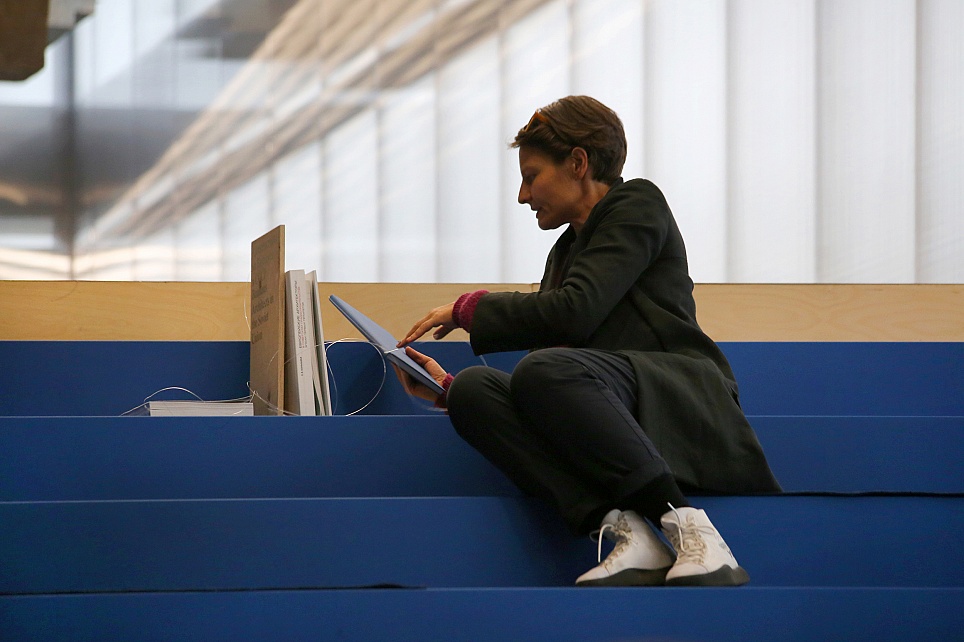 Artist Doreen Mende in the Reading area, photo: Silke Briel.