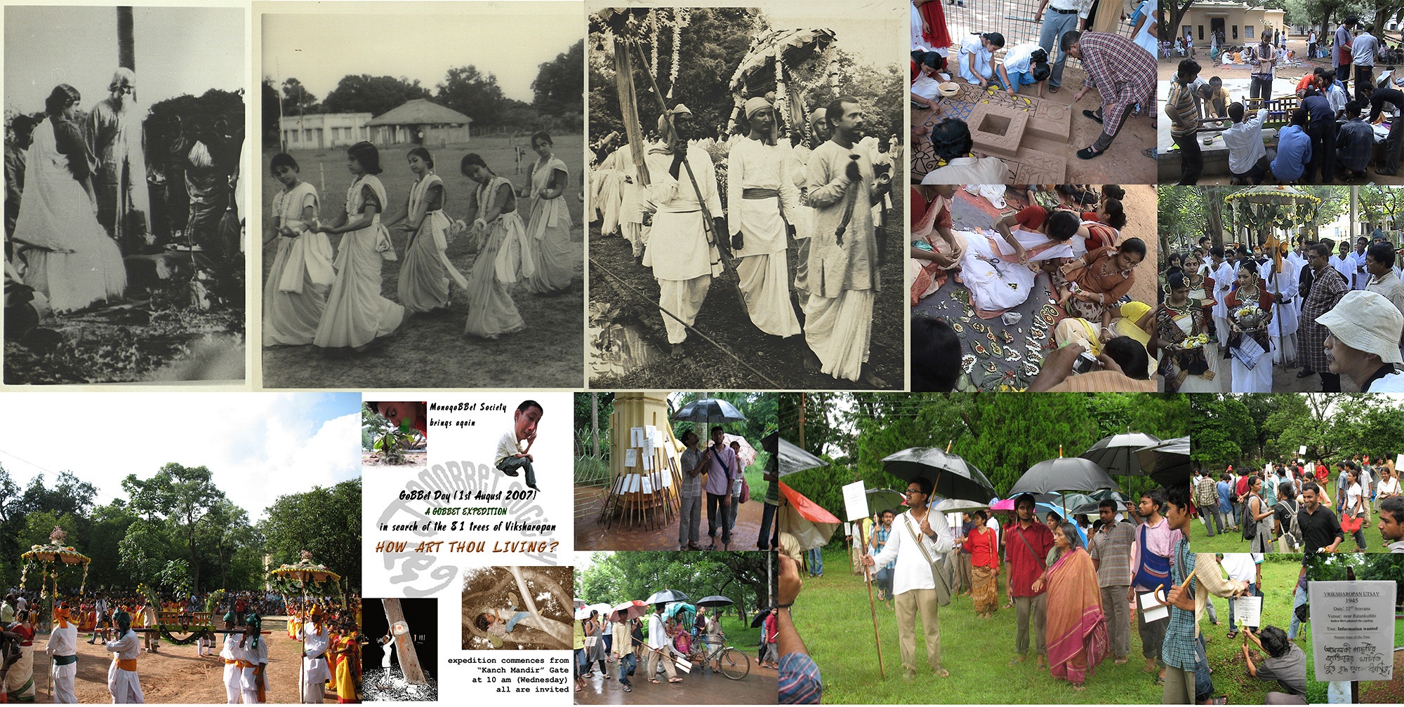 2. Lower group of images are from 2007 Gobbet Day Activity of searching all the trees planted in the last 80 years by Mono Gobbet Society, Kala Bhavana, Santiniketan on 1 August 2007 in the campus of Visva Bharati. Image courtesy: Sanchayan Ghosh.