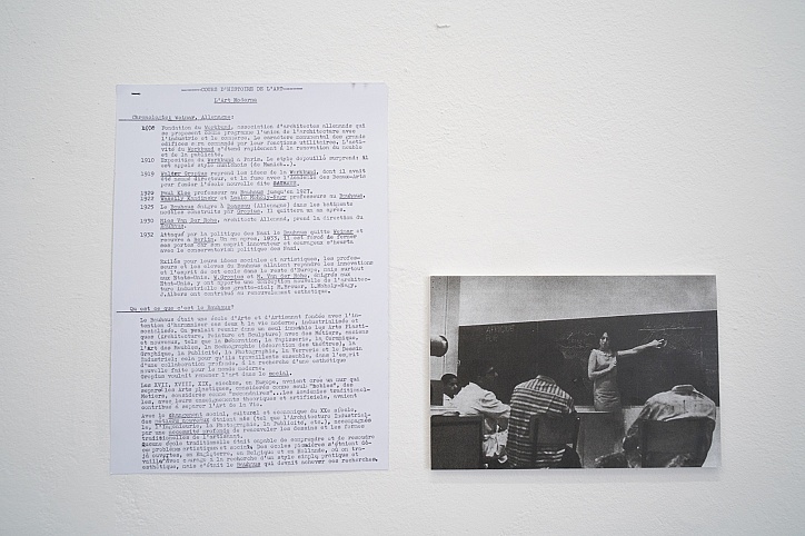 Les œuvres de Kader Attia sont mises en dialogue avec les recherches de Maud Houssais, chercheuse et curatrice indépendante basée au Maroc10. Celle-ci travaille sur les échanges entre les théories du Bauhaus et la modernité au Maroc, à travers l’exemple de l’École de Casablanca (1962-72) et du projet dit des « Intégrations » initié par le cabinet d’architectes Faraoui et de Mazières, qui lance un programme de plusieurs commandes entre 1968 et 1978 auprès des artistes marocains et étrangers pour concevoir des œuvres conçues spécifiquement pour leurs projets architecturaux, permettant ainsi, d’introduire l’art dans l’espace public. L’exposition tente également de démontrer les éléments communs entre le Maroc et le Bauhaus à travers ce nouveau programme pédagogique d’enseignement expérimental. Dans cette section, l’attention a été portée sur l’introduction des formes artistiques traditionnelles et artisanales dans le modernisme par les membres des artistes du groupe dit « de Casablanca11 ».