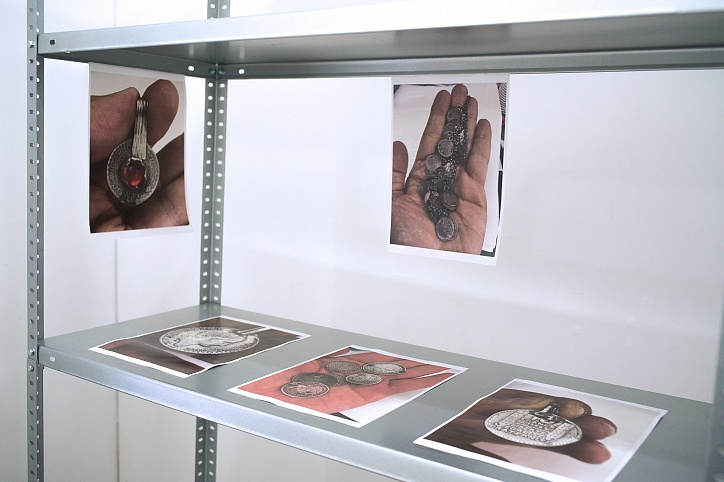 Au Zentrum Paul Klee, la partie sur le Maghreb se présente en deux temps. Le premier aborde les vidéos de Kader Attia, qui s’articulent autour de questionnements sur le processus ininterrompu d'appropriation et de réappropriation culturelle et sur la complexité des notions liées aux restitutions des biens culturels. D’une durée de 30 minutes, la vidéo intitulée Mélancolie Coloniale se présente sous la forme d’un dialogue entre l’artiste et sa mère sur les bijoux berbères. À partir de son regard avisé, l’artiste nous livre des clefs de lecture sur les bijoux berbères qui se distinguent par les couleurs vives et leur raffinement. Fabriqués en argent, ils sont généralement ornés de coraux et parfois d’émaux incrustés. Cependant, une observation approfondie révèle la présence de quelques éléments étrangers tels que des portraits du roi des Belges Léopold II, ou encore, une allégorie de la République française.